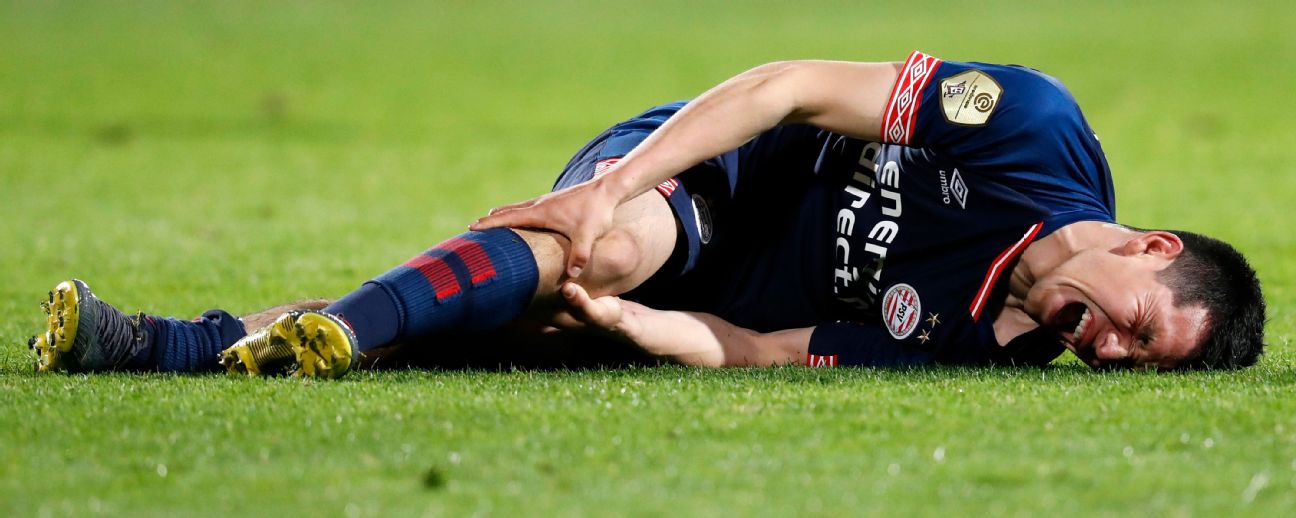 Chucky Lozano sale en camilla tras golpe en la rodilla con PSV
