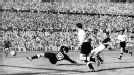 Helmut Rahn, de Alemania Federal, anotó el gol del desempate a los 86 minutos de juego y le dio a su selección el título del mundo