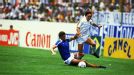 El partido entre Argentina y Alemania Federal estaba igualado 2-2, y Jorge Burruchaga (7) anotó el 3-2 final